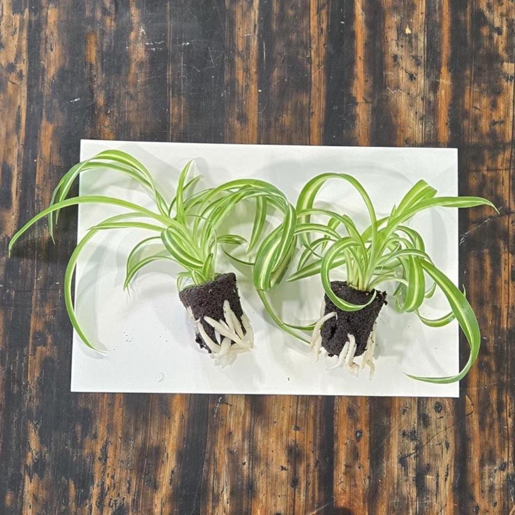 - Curly "Bonnie" Spider plant rooted in grow block with developed root system